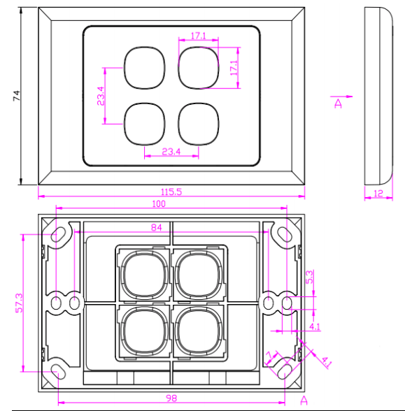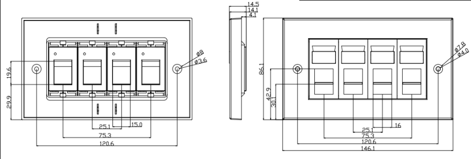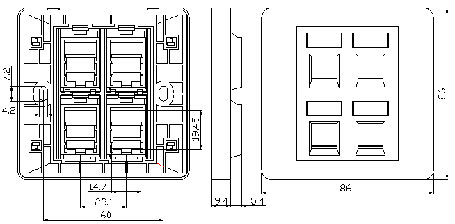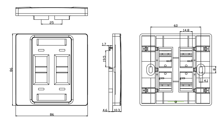 / 제품 / 구리 시스템 / 페이스 플레이트 / 4 포트 페이스 플레이트