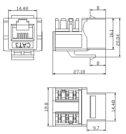 에이 키스톤 잭 모듈 식 잭 또는 스냅인 잭이라고도하는 것은 구조화 된 케이블 시스템에 사용되는 작은 모듈 식 커넥터입니다. 구리 케이블의 표준화 된 연결 지점을 제공하여 네트워크 매장, 패치 패널, 벽판 및 기타 네트워킹 장비를 쉽고 유연하게 설치할 수 있습니다.
