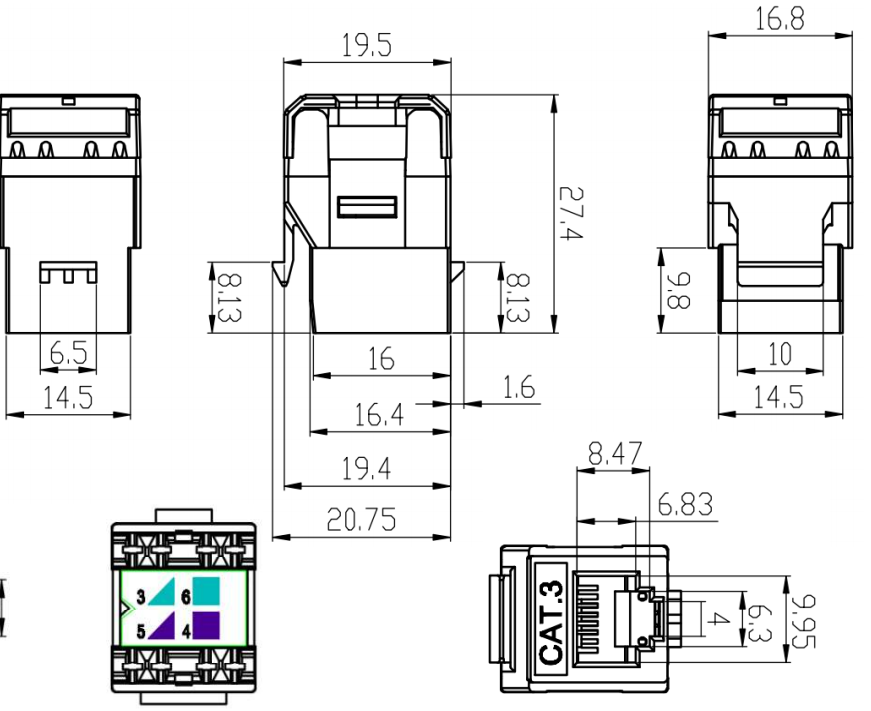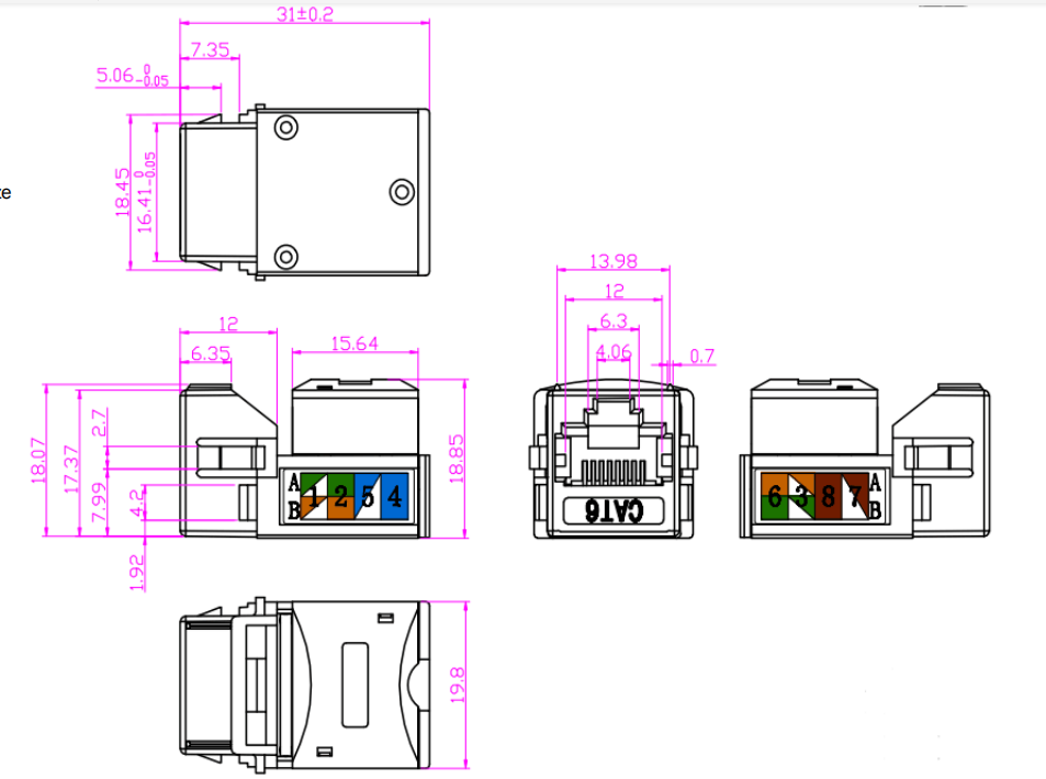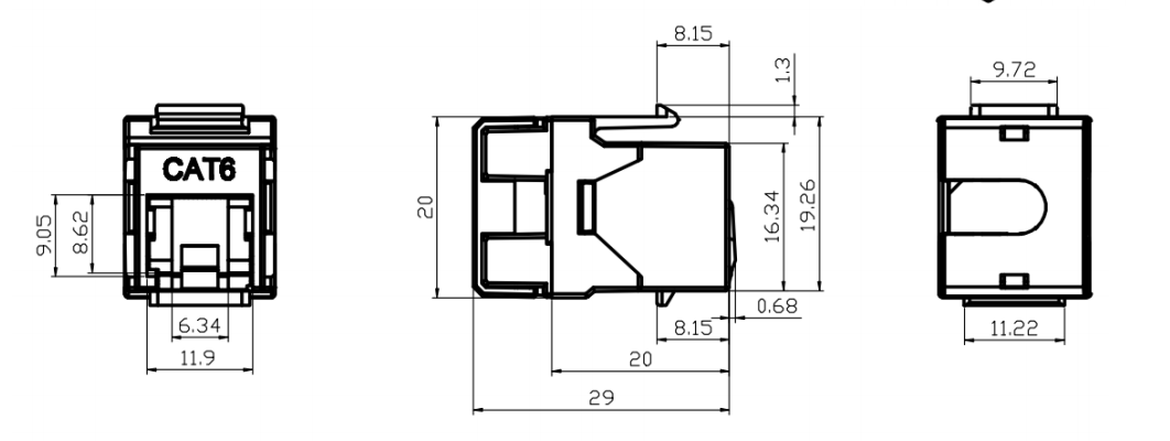 잭 하우징 : 잭 하우징은 일반적으로 플라스틱으로 만들어졌으며 잭의 내부 구성 요소에 대한 구조와 보호 기능을 제공합니다. 키스톤 개구부 또는 슬롯에 안전하게 맞도록 설계되었습니다.